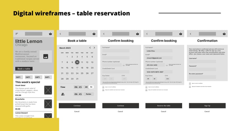 Redesign the little Lemon website to address mixed information with inconsistent labels, actions, and designs. Improve user flow and interaction with the little Lemon website in desktop and mobile versions.