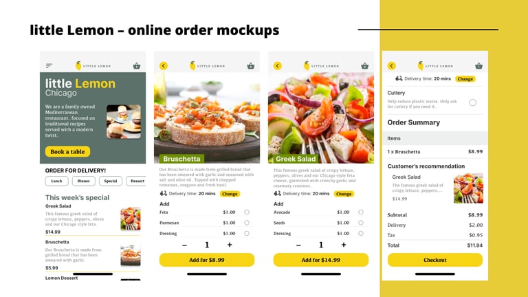 There is a mix of information on the current little Lemon website with inconsistent labels, actions, and designs. For example, there is no add button on the individual dish information page. As a result, the users feel confused about the steps in placing orders.