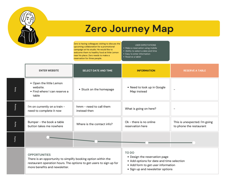 The problem statement: Zero is excited about online reservations, but there is no such feature on the little Lemon website. The book a reservation button doesn't lead to anything or a new page.
